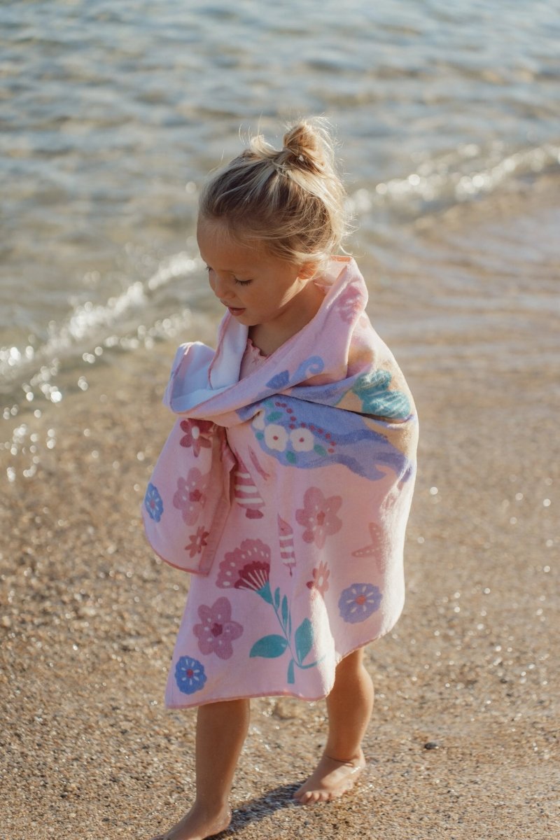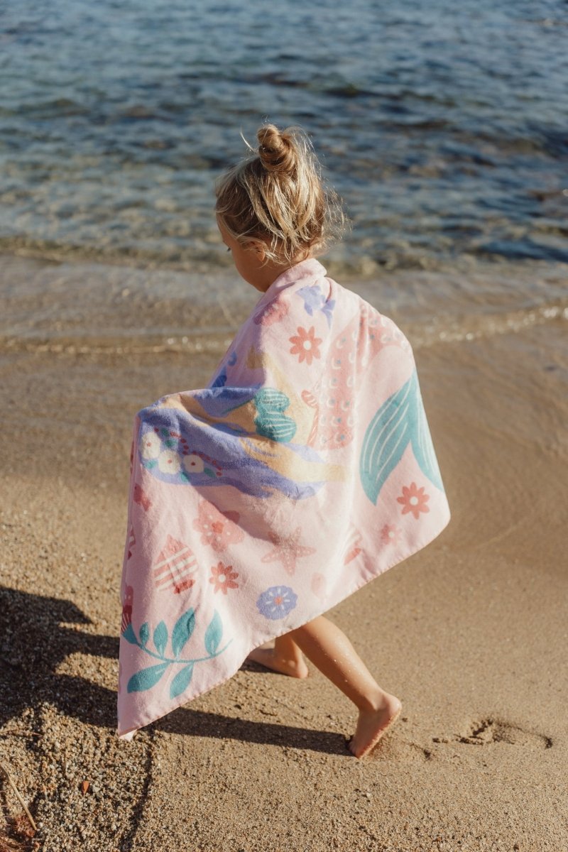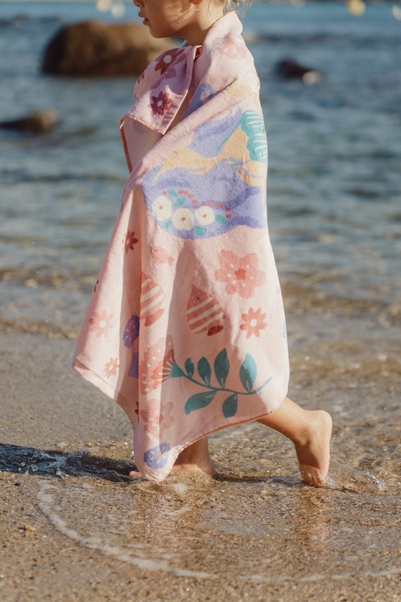 Dopo una giornata all'insegna del divertimento in acqua, l'asciugamano da spiaggia Dreamy Mermaid è il modo perfetto per avvolgere il tuo piccolo in morbidezza e comfort. Realizzato in cotone biologico al 100% con un morbido tessuto a spugna, l'asciugamano è delizioso sulla pelle e presenta una vivace stampa ricca di sirene, pesciolini e conchiglie.