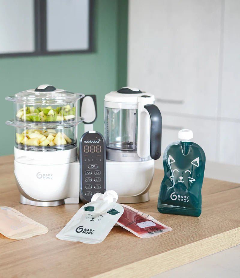 Set di 20 sacchetti da 150 ml - Riutilizzabili fino a 20 volte - Apertura per il riempimento sul fondo - Area di classificazione e scrittura - Adatti a neonati e bambini - Resistenti agli urti, alle cadute e all'acqua - Possono andare in freezer e in lavastoviglie - Realizzati in plastica riciclata