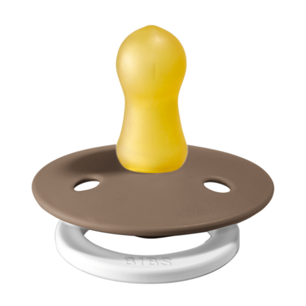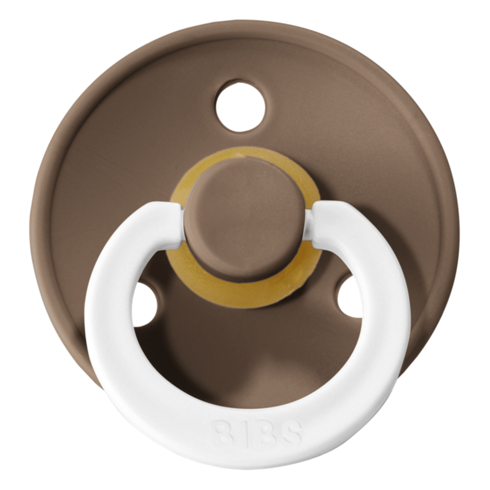 BIBS Colour è il ciuccio originale con uno scudo rotondo e una tettarella a forma di ciliegia.