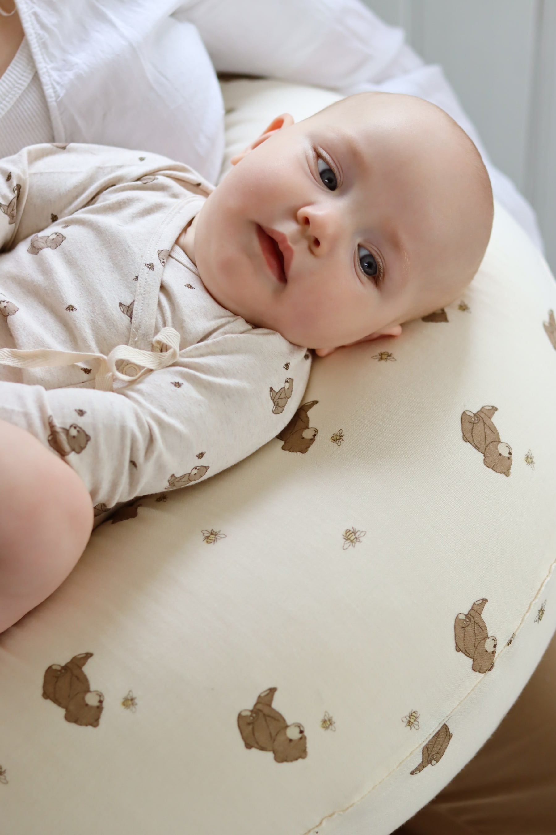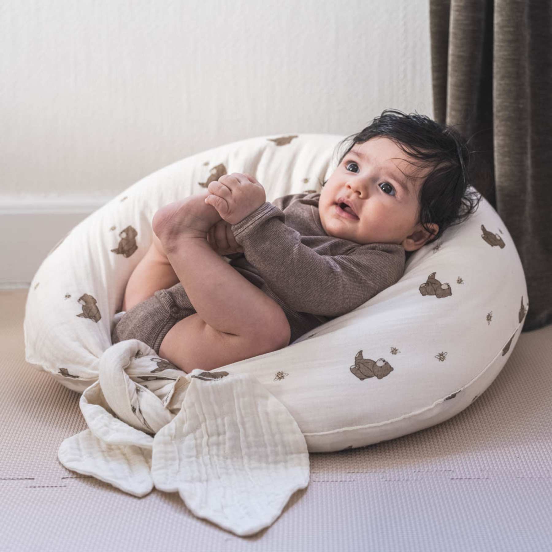 Questo bellissimo cuscino per l'allattamento, innovativo e multifunzionale, è stato progettato per i genitori in attesa e per i neogenitori, per iniziare al meglio un nuovo e fantastico capitolo. Il cuscino per l'allattamento fornisce i bisogni essenziali quando si allatta il bambino al seno o al biberon. Con questo cuscino allattamento all'avanguardia, allattare due gemelli non è una sfida perché la lunghezza è sufficiente per allattare due bambini. Pratico e portatile, il cuscino può essere facilmente legato intorno al corpo. In questo modo è particolarmente comodo alzarsi e togliere il bambino dalla culla, ad esempio per allattarlo. Una morbida foglia è attaccata a ogni estremità del cuscino per l'allattamento, in modo che il bambino abbia sempre un panno confortante a portata di mano. Inoltre, è modellabile e fornisce un comodo sostegno alla mamma e al bambino durante l'allattamento, come cuscino per dormire o come supporto lombare per la mamma incinta. Allo stesso tempo, funge da supporto perfetto quando il bambino deve stare a pancia in giù, da sedia o da sostegno per il collo quando il bambino cresce.