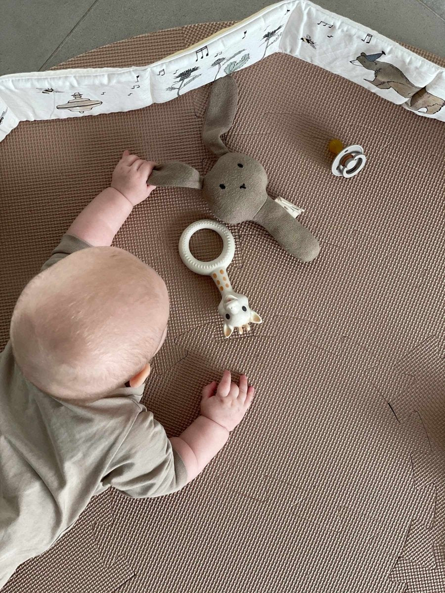 I nostri famosi tappeti da gioco in gommapiuma sono finalmente disponibili in nuove e bellissime forme e colori. Il tappeto da gioco rotondo in schiuma si adatta a qualsiasi casa e conferisce un aspetto moderno e bello. Perfetto per far giocare e sdraiare il bambino. Mentre fa ginnastica e salta sul pavimento, il tappeto da gioco offre una comoda area di gioco. Il prodotto ha una superficie morbida, resistente agli urti e confortevole, realizzata in etilene vinilacetato espanso (EVA). L'EVA è considerata un'alternativa sicura al PVC. Il tappeto da gioco è facile da pulire e viene fornito in una confezione da venti pezzi. Scegli tra cinque bellissimi colori. Dimensioni: 110 x 110 cm - H 1,2 cm.