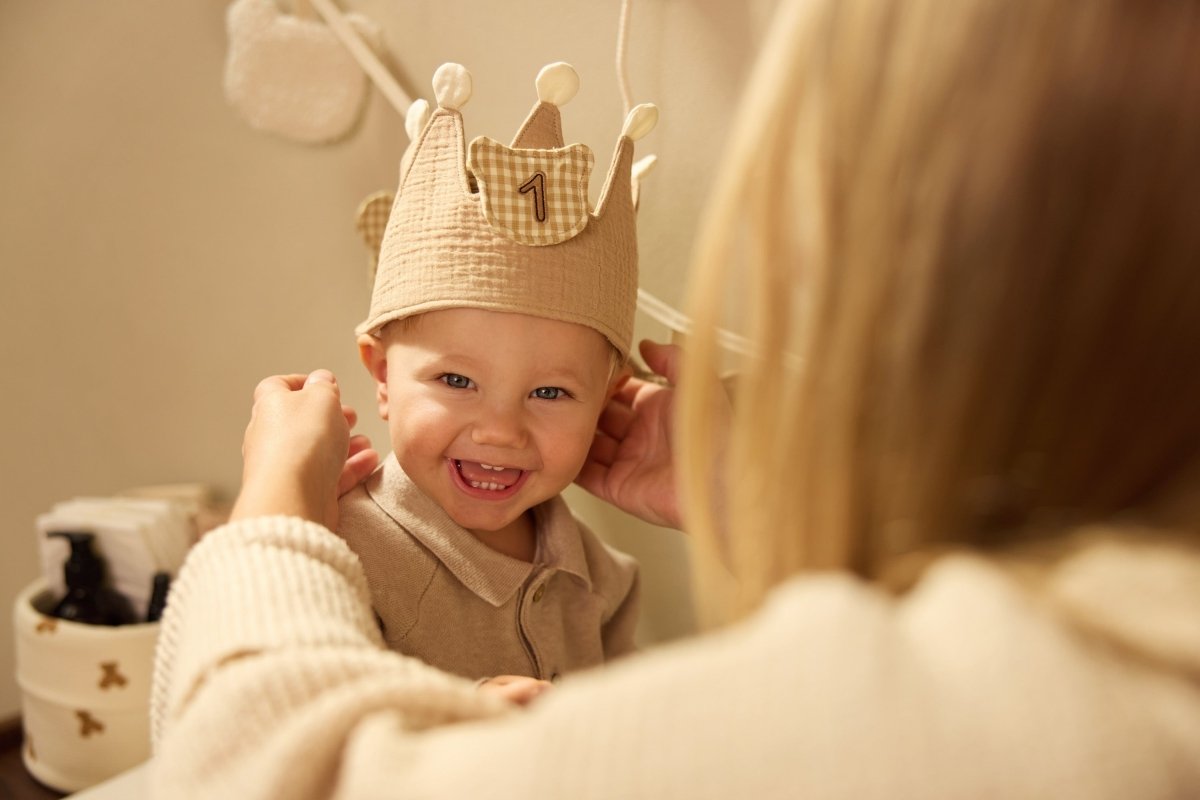 Fare il compleanno diventa ancora più speciale con questa corona festosa! Non appena il tuo bambino la indosserà, sarà subito festa. La morbida corona è comoda da indossare ed è dotata di numeri separati da 0 a 4, in modo da crescere con ogni compleanno. Dal primo compleanno agli anni della maturità: la stessa corona, ogni volta con un nuovo numero. Grazie al velcro, puoi cambiare il numero in pochi secondi. In questo modo, la corona è sempre pronta per una festa!