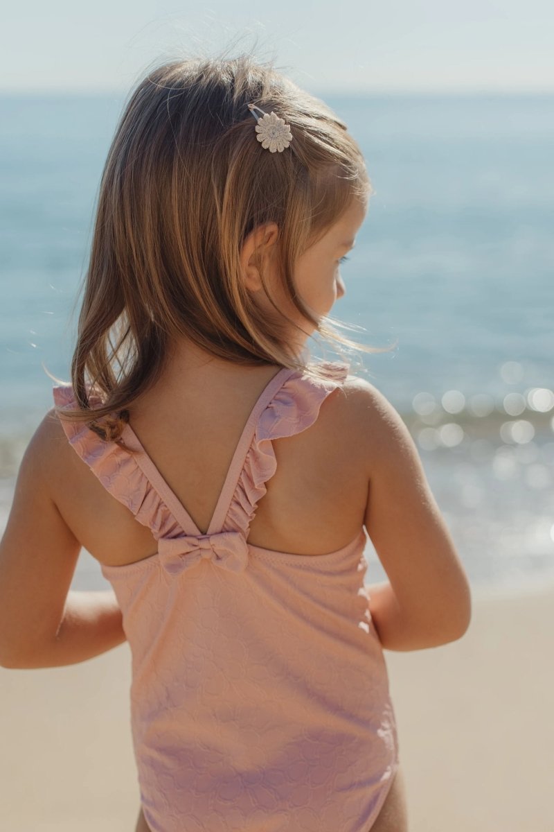 Fai risplendere la tua piccola nelle giornate di sole con il costume da bagno Dreamy Pink Rose . Il delicato tessuto floreale 3D conferisce al costume un aspetto raffinato e vivace, perfetto per le giornate in spiaggia, i giochi in piscina o in giardino.