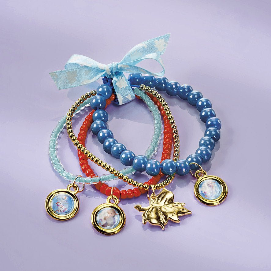 Con questo delizioso set di gioielli Disney Frozen 2, crea dei graziosissimi braccialetti con perline e ciondoli color oro, con Anna, Elsa e Olaf. Infila i 4 braccialetti con perline rotonde di diverse dimensioni e colori, oro, blu, turchese e rosso. Decora i braccialetti con una principessa o un ciondolo a forma di foglia speciale. Puoi anche legarli insieme con un nastro per creare un braccialetto di lusso. Un set adorabile per un'ampia gamma di bambine.
