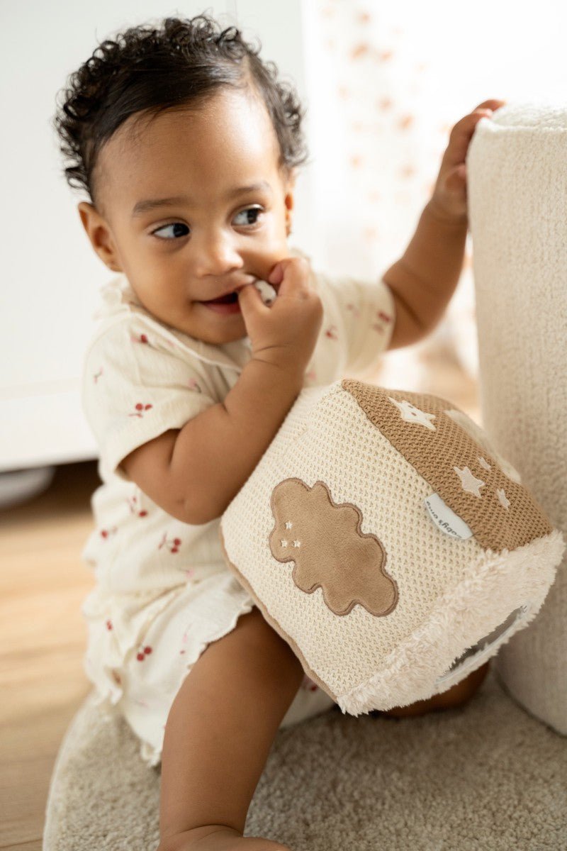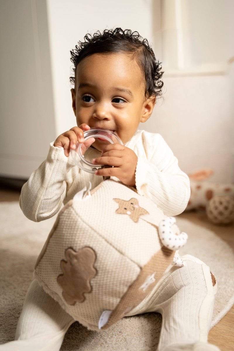 Grazie al suo design morbido, sicuro e maneggevole , il cubo è ideale per le mani dei più piccoli. Ineutralcolorie le finiture raffinate si abbinano perfettamente allo stile rilassante della collezione Heaven. Un giocattolo affettuoso ed elegante che garantisce divertimento sia a casa che in viaggio.