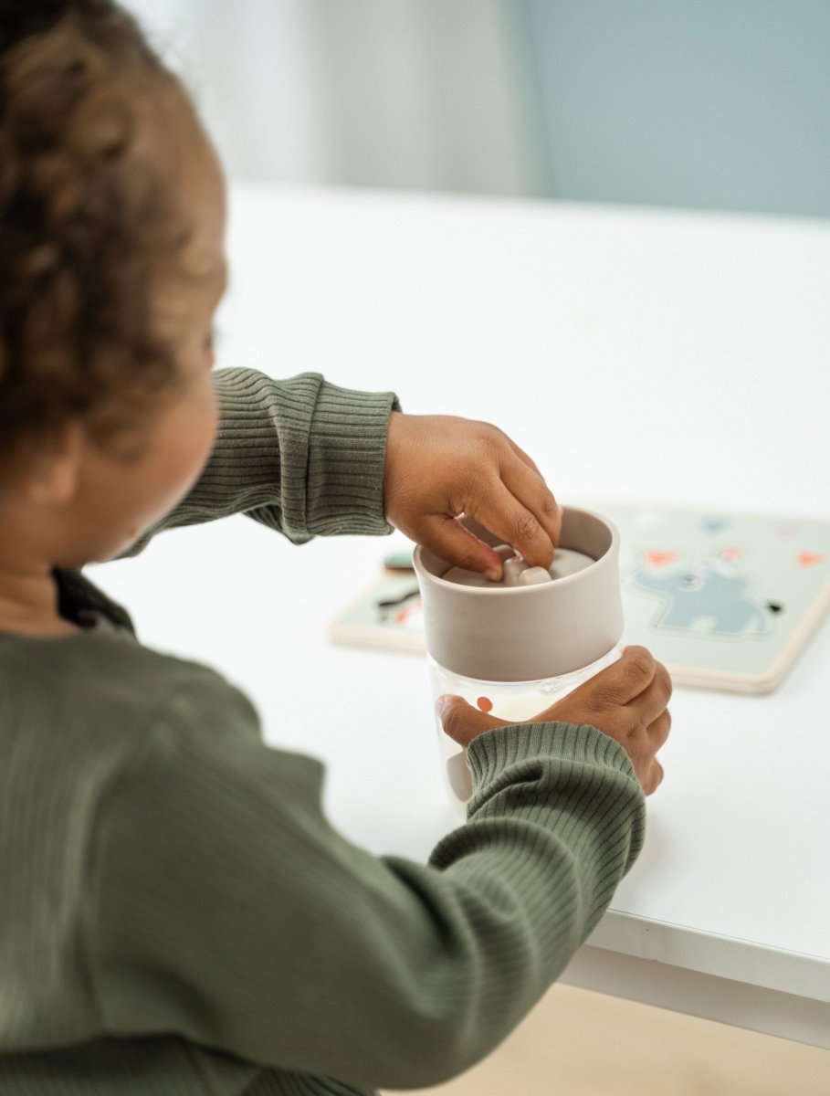Lascia che il tuo piccolo beva in autonomia con la Tritan Cup 360° in Celebration Sand. Realizzata in Tritan, con un coperchio in PP e siliconeche impedisce le fuoriuscite. Durevole, sicuro e ideale per l'uso quotidiano, a casa o in viaggio.
