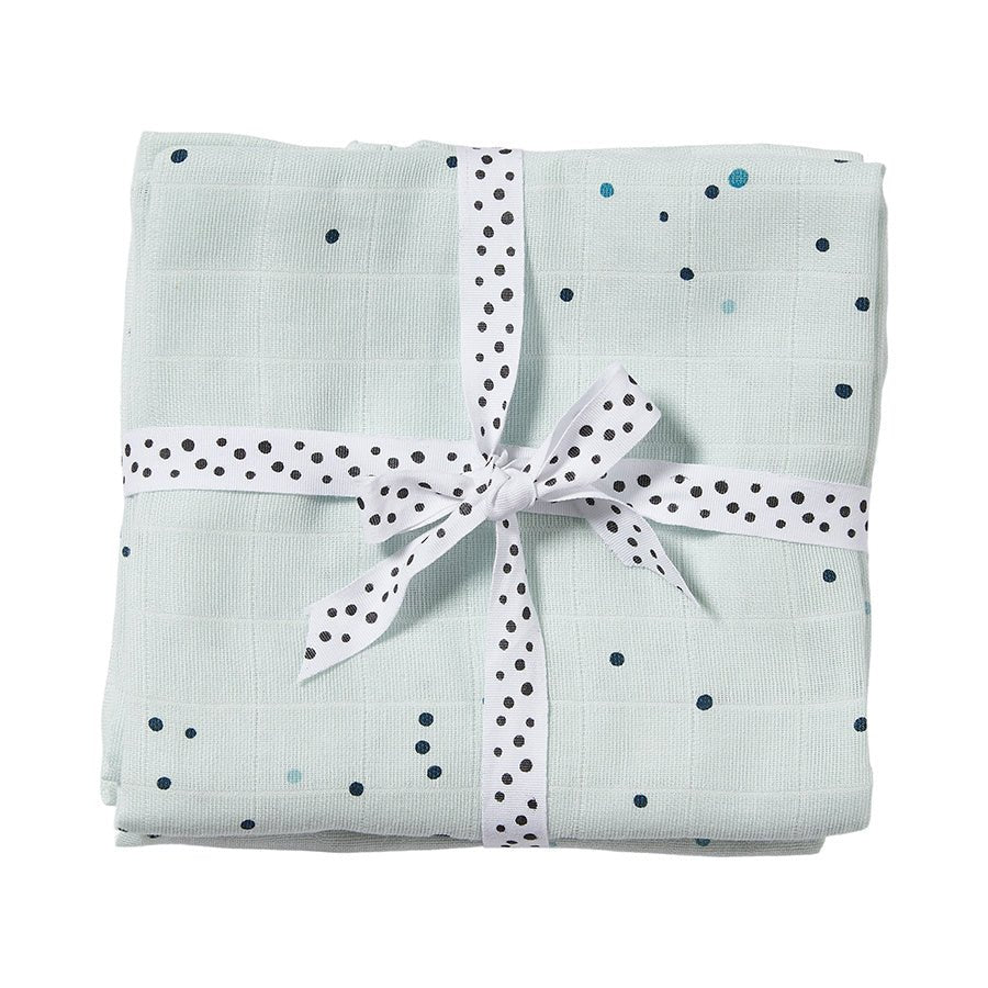 Done by Deer Questo prodotto è OEKO-TEX® gecertificeerd.Een set di due panni per il ruttino in morbida mussola di colore blu pastello con pois Dreamy. I panni per il ruttino sono perfetti quando la mamma o il papà cambiano il pannolino o quando è il momento di fare il ruttino dopo la poppata.