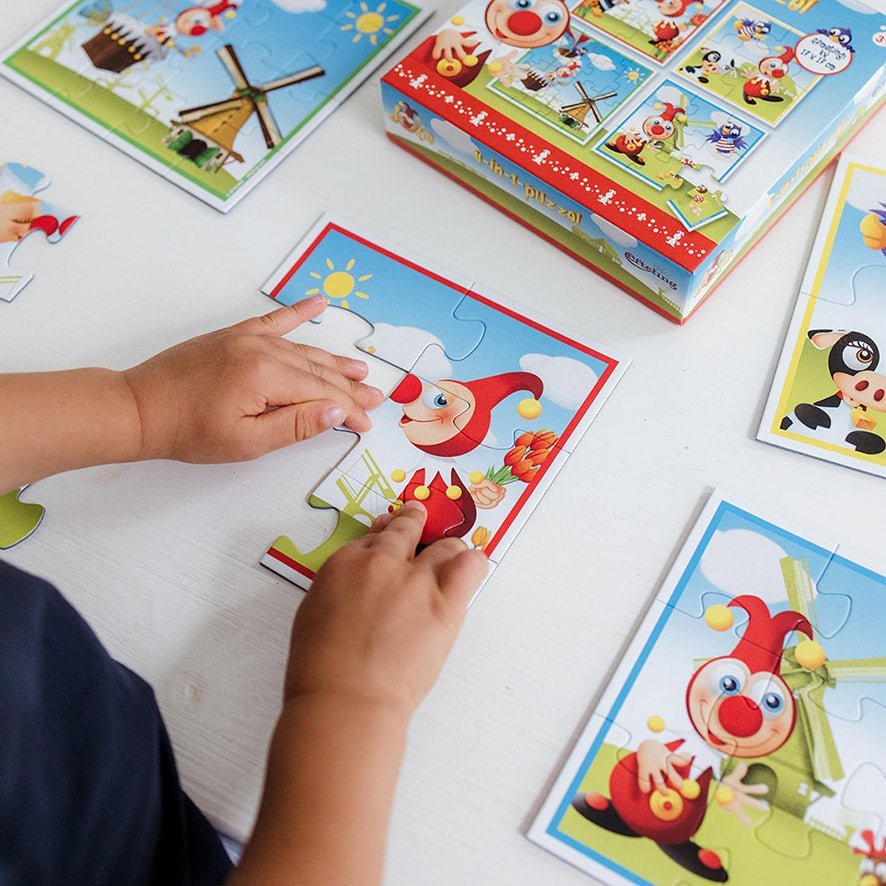 - Contiene 4 puzzle da 4, 6, 9 o 16 pezzi