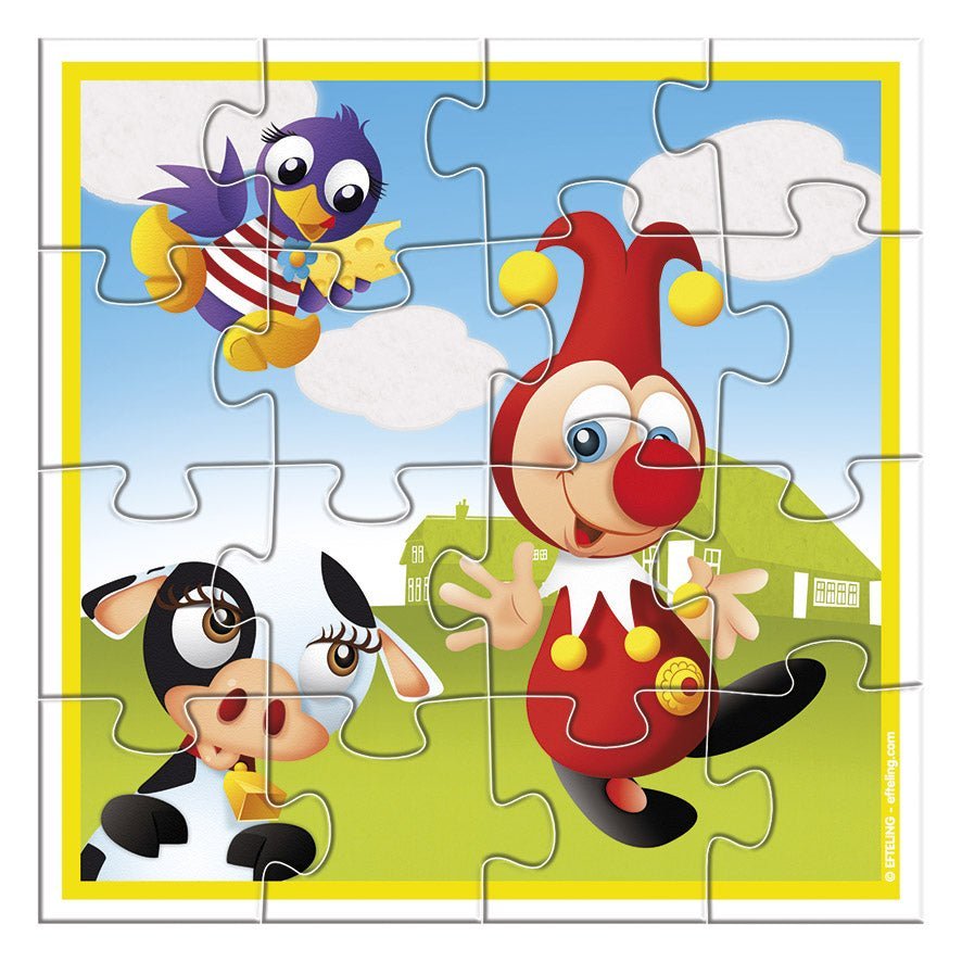 Questo set è composto da 4 puzzle, ognuno con un'immagine colorata di Jokie, da solo, con Jet o con alcuni amici. Il puzzle è una delle prime attività che allena le capacità motorie del bambino. I più piccoli iniziano con un puzzle da 4 pezzi, mentre chi è pronto per la sfida successiva può comporre un puzzle da 6, 9 o 16 pezzi