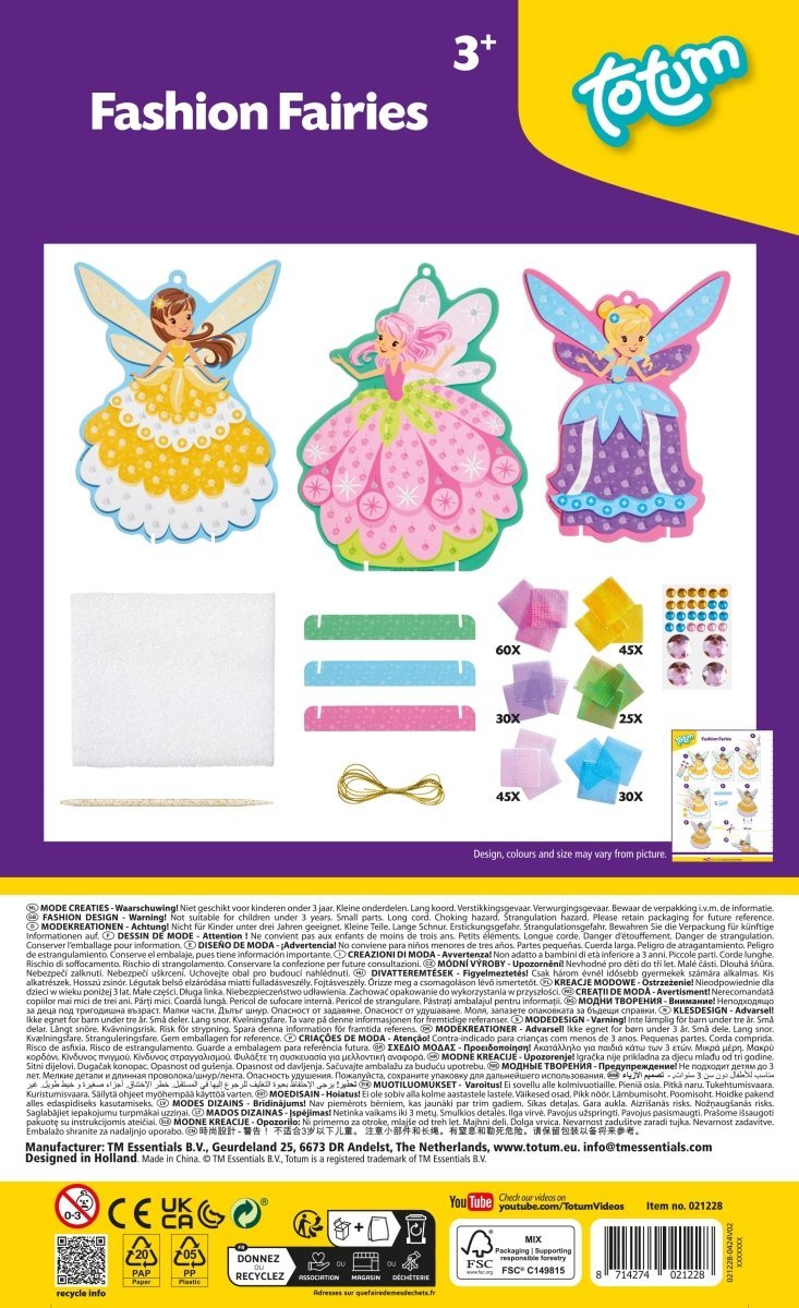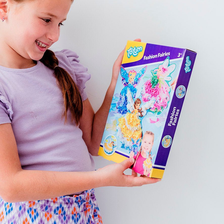 Con questo originale set di lavoretti di Totum, le principesse della moda realizzeranno le più belle figure di fate con abiti da ballo stravaganti: dai alle tue bambole fatate i più bei vestiti da principessa con 6 diversi colori di tessuto lurex luccicante. Usa lo spiedino e il cuscinetto in dotazione per infilare i pezzi di tessuto lucido nel cartone. Wow, che bel risultato in 3D! Scegli le tue combinazioni di colori per creare gli abiti da ballo più belli. Chi sorprenderai con la tua più bella creazione di moda?