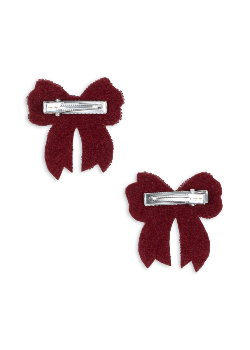 Aggiungi un tocco di brillantezza a qualsiasi look con queste spille per capelli fatte a mano da Konges Slojd. I simpatici fiocchi sono decorati con paillettes decorative e facili da attaccare grazie alla piccola clip in ferro. Perfette per le occasioni di festa o come dettaglio scintillante per qualsiasi outfit.