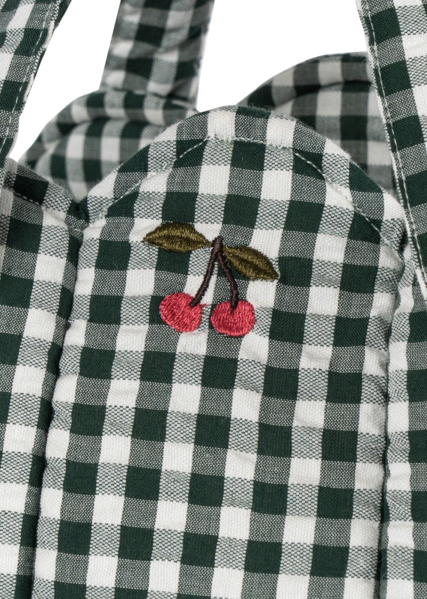 Caratterizzato da morbide cinghie per il trasporto, profili decorativi e bordi smerlati