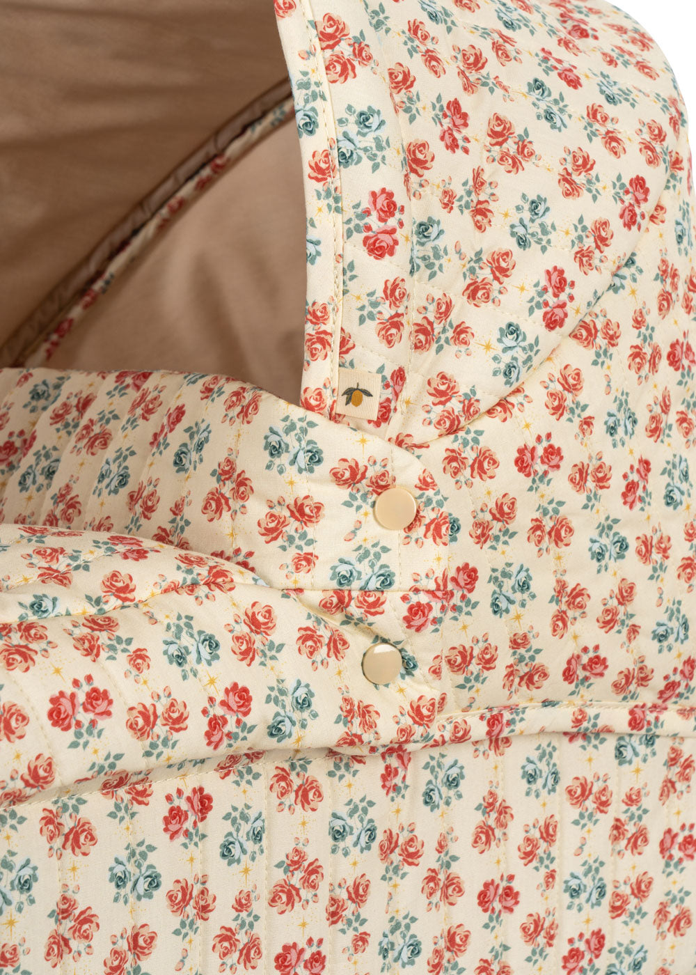 Foderato con tessuto trapuntato e rifinito con delicati bordi smerlati