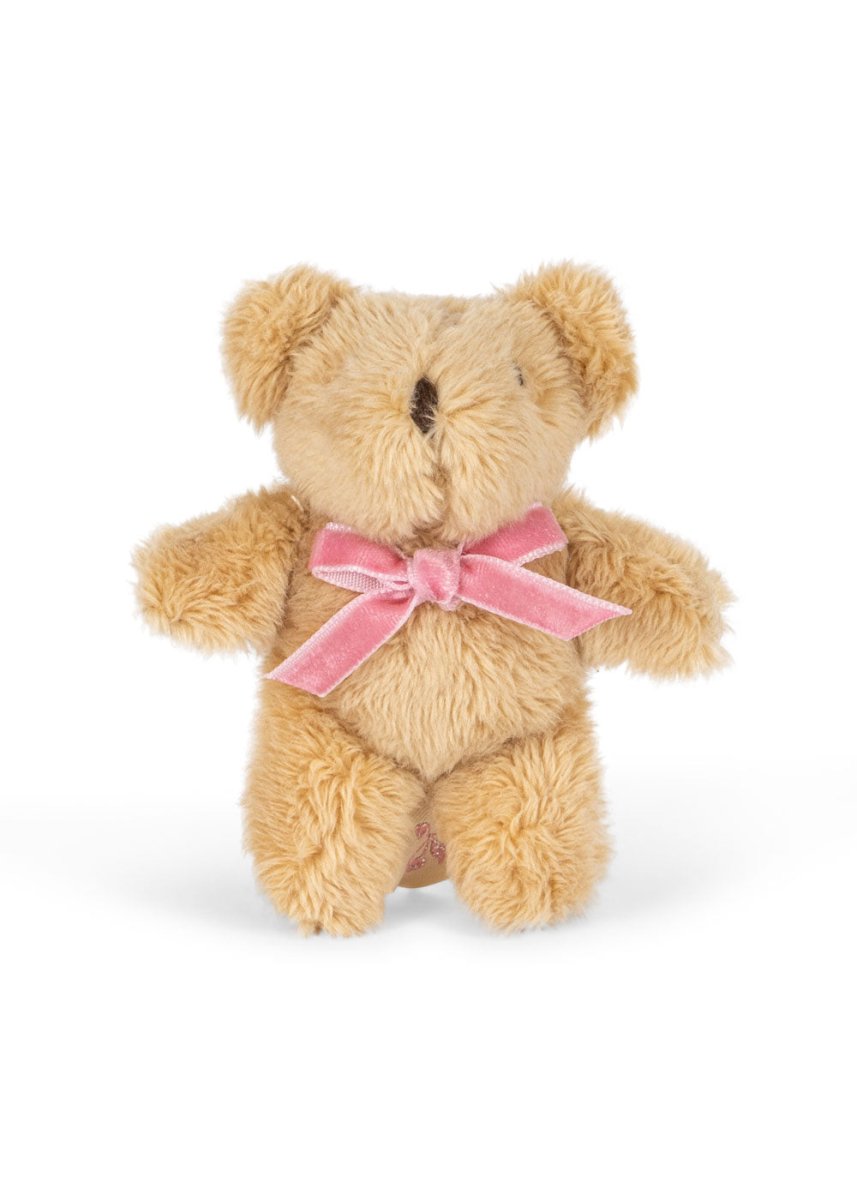 Un affascinante mini orsacchiotto dal look nostalgico, ideale per i piccoli collezionisti e per i giochi di immaginazione.