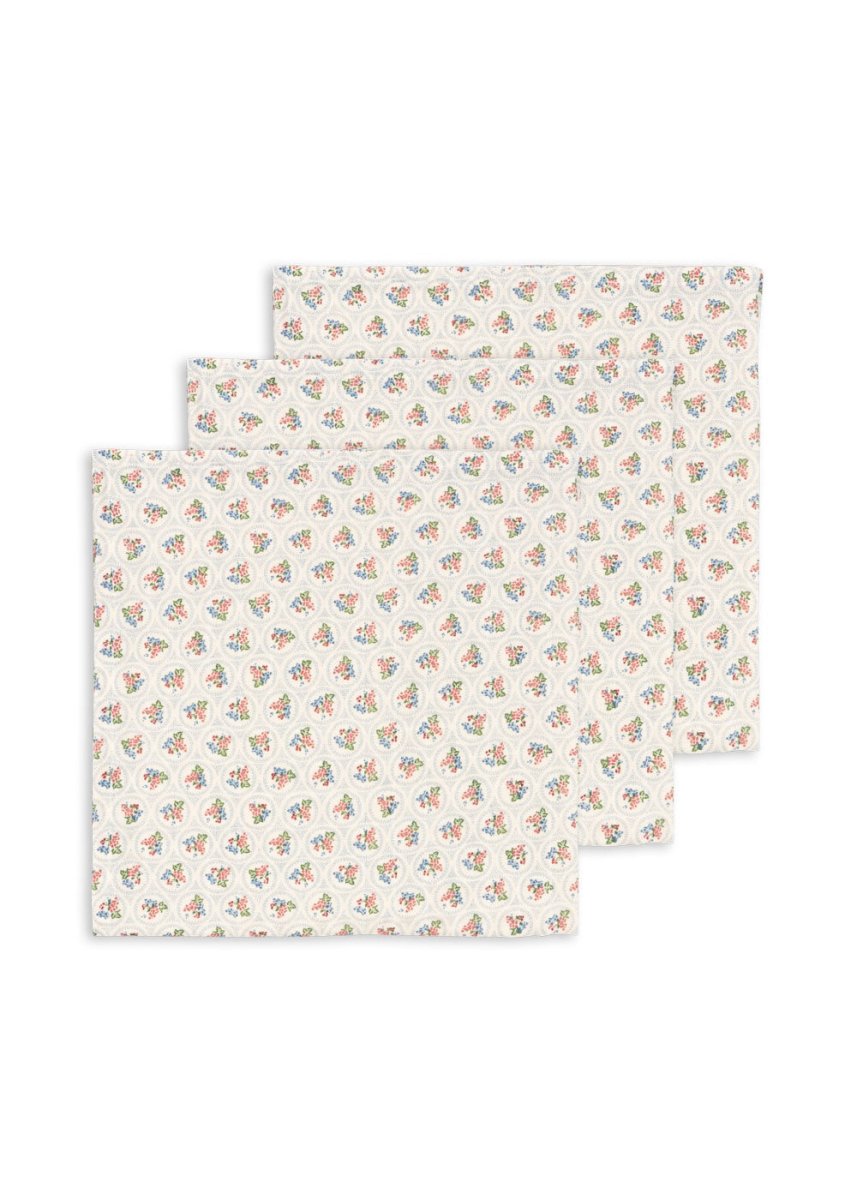 Morbidi panni in mussola multiuso di Konges Slojd, ideali per il cambio del pannolino, per le fuoriuscite, come coperta leggera o come tampone per la saliva. Realizzato in 100% cotone biologico e certificato GOTS (CU1094701), garantisce una scelta sostenibile e rispettosa della pelle. Disponibile nel design Verona Blues con stampe d'autore