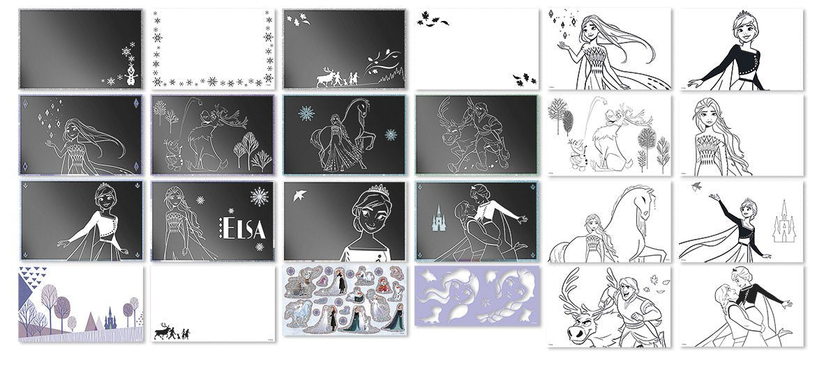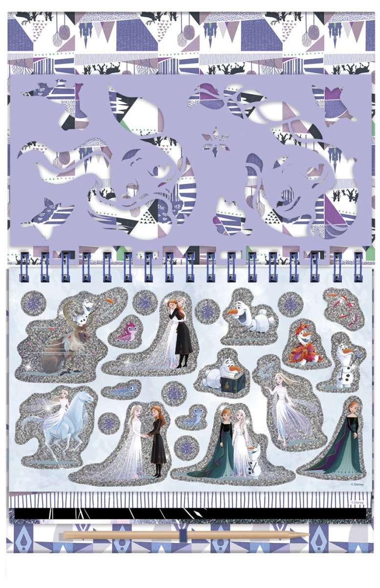 Con questo lussuoso libro da colorare con copertina rigida e raccoglitore ad anelli, potrai realizzare i tuoi gratta e vinci più belli con effetto glitter. Gratta via lo strato nero e vedrai emergere le bellissime figure di Frozen. Sul retro dei fogli troverai dieci diverse immagini da colorare, adesivi, una sagoma riutilizzabile e una penna per grattare. Un grande divertimento per la casa, ma anche in viaggio o in vacanza!