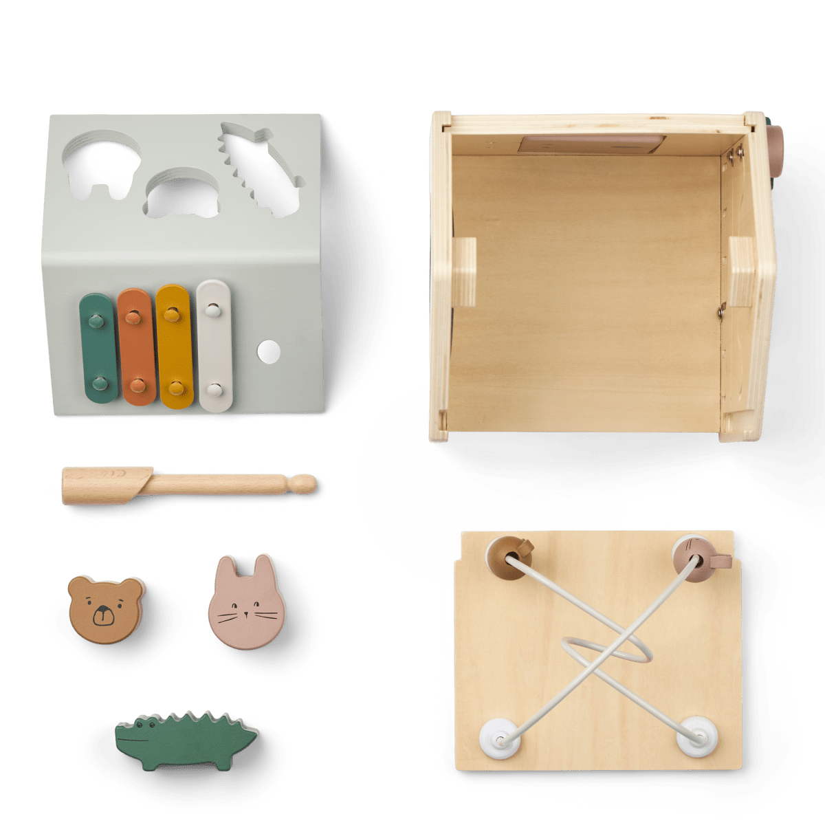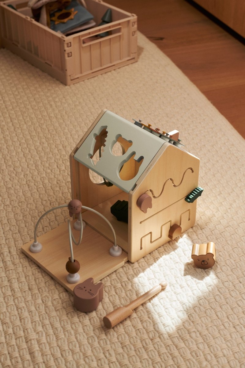 Cubo attività in legno a forma di casa