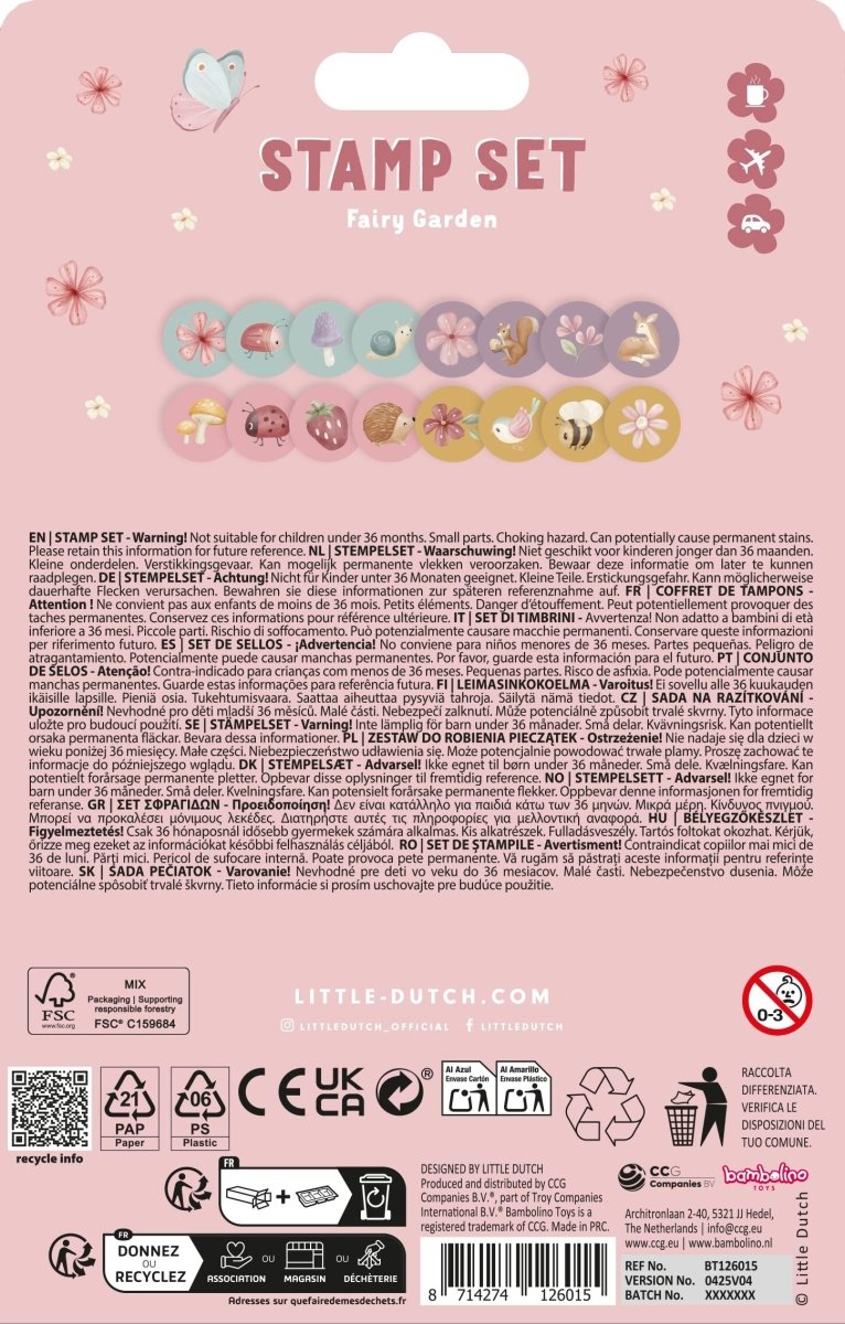 Entra nel mondo incantato delle fate con i timbri autoinchiostranti Fairy Garden di Little Dutch! Questo set comprende diversi timbri con figure simpatiche come api, cervi, funghi e fiori. Con questi timbri, i bambini potranno creare i loro giardini fatati su carta o su pagine da colorare. I timbri sono autoinchiostranti, quindi non serve altro inchiostro. Un modo semplice e divertente per stimolare la creatività e sviluppare la motricità fine. Il set include anche una pratica scatola per riporre i timbri.