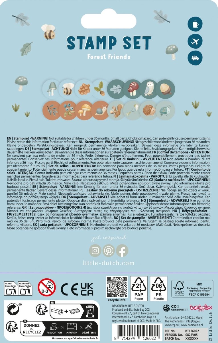 Esplora la foresta con i timbri autoinchiostranti Forest Friends di Little Dutch! Questo set comprende diversi timbri con simpatici animali della foresta come gufi, ricci e scoiattoli. Con questi timbri, i bambini potranno creare i loro paesaggi forestali su carta o su pagine da colorare. I timbri sono autoinchiostranti, quindi non serve altro inchiostro. Un modo semplice e divertente per stimolare la creatività e sviluppare la motricità fine. Il set include anche una pratica scatola per riporre i timbri.