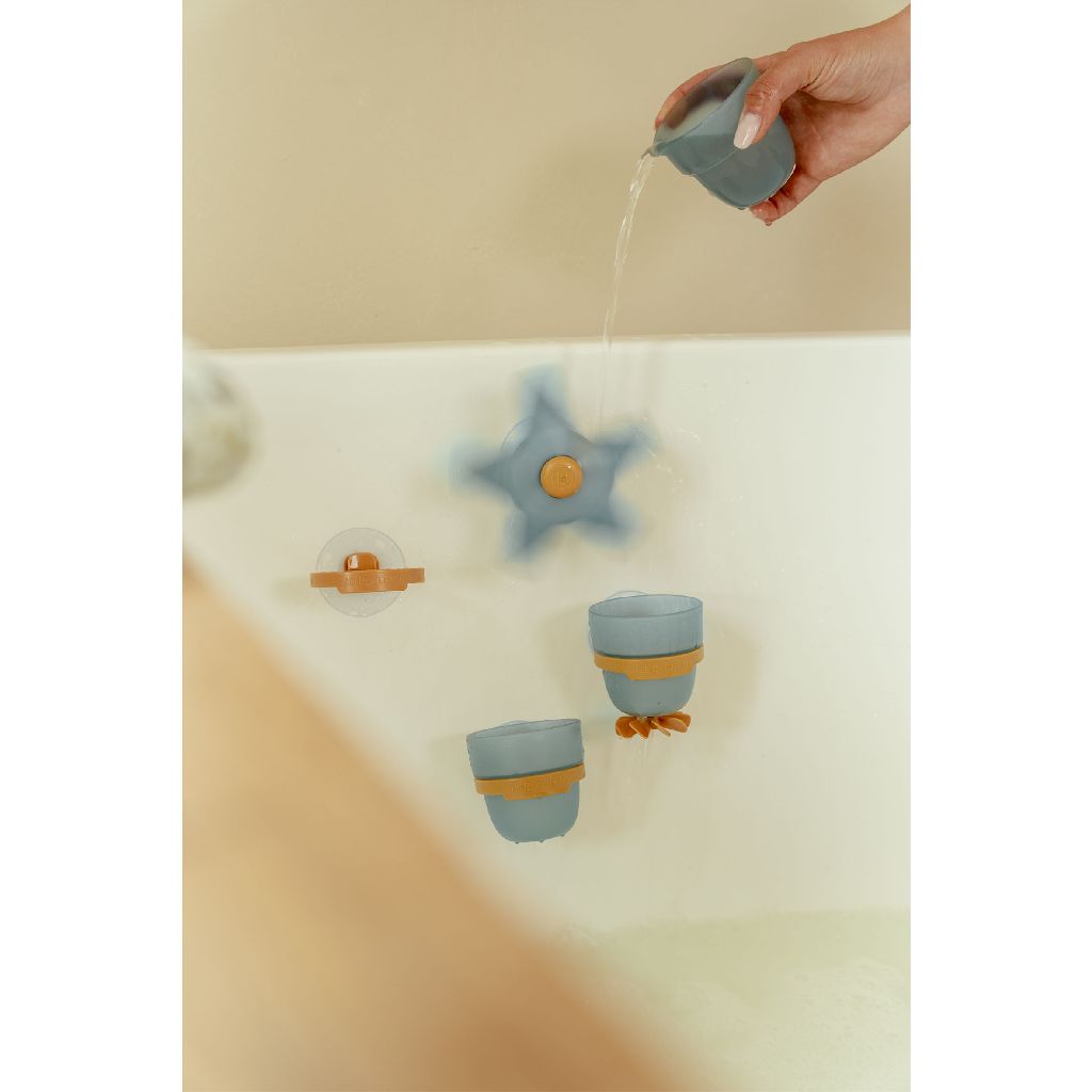 Contenuto: 4 elementi con ventose - ruota rotante a forma di stella marina, due tazze da bagno e una tazza per versare