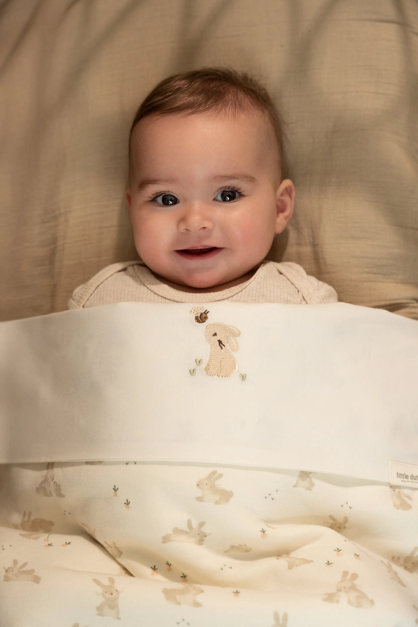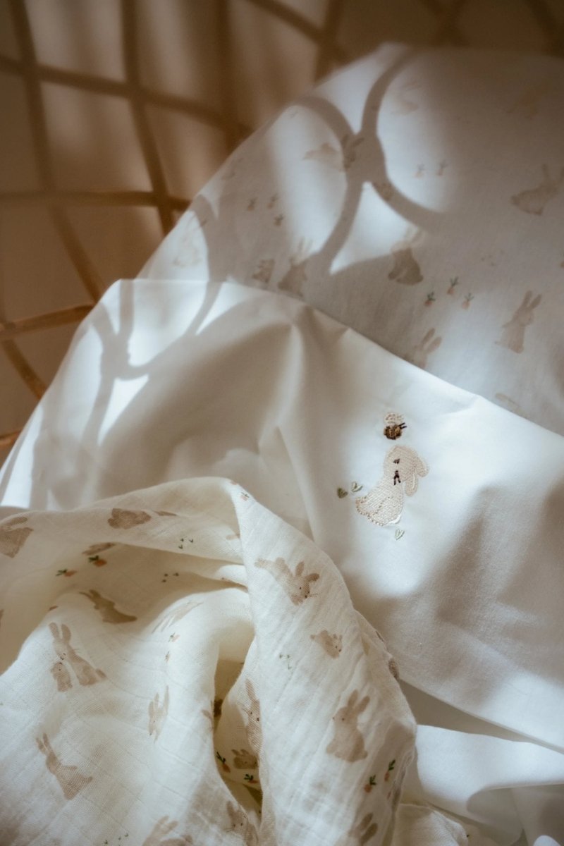 Questo lenzuolo per culla Baby Bunny ricamato è caratterizzato da un ricamo di konijntjeed è realizzato al 100% katoen.Een il bellissimo lettino aggiunge immediatamente più atmosfera al bambino o alla cameretta. Il lenzuolo per culla è una combinazione perfetta con una coperta per culla Little Dutch . I bambini dormono meravigliosamente sotto questo lenzuolo, perché è in cotone e la striscia di copertura del lenzuolo è piacevole e morbida.