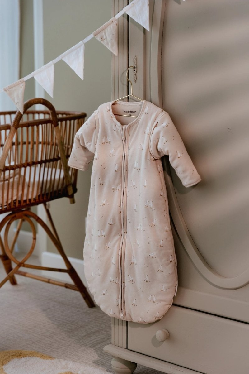 Lascia che il tuo piccolo sogni in questo bellissimo sacco a pelo invernale con maniche a zip in una morbida tonalità naturale con una sottile stampa di Little Goose. È realizzato in cotone biologico al 100% e ha una sensazione meravigliosamente morbida e lussuosa. È perfetto per tenere al caldo il tuo bambino e la stampa della piccola oca rende i sogni ancora più dolci. Dormire con stile non è mai stato così comodo! Il sacco nanna è disponibile nelle misure 60 cm, 70 cm e 90 cm. Il sacco a pelo si chiude in modo che il bambino non possa aprire facilmente la cerniera da solo. C'è un lembo sopra la zip per proteggere la pelle sensibile del bambino.