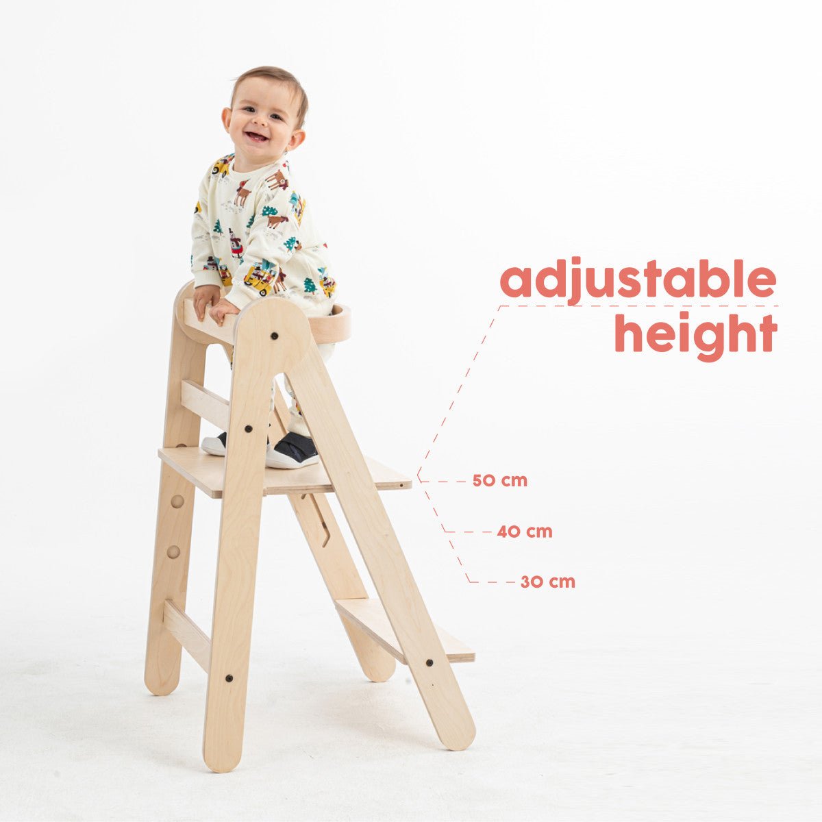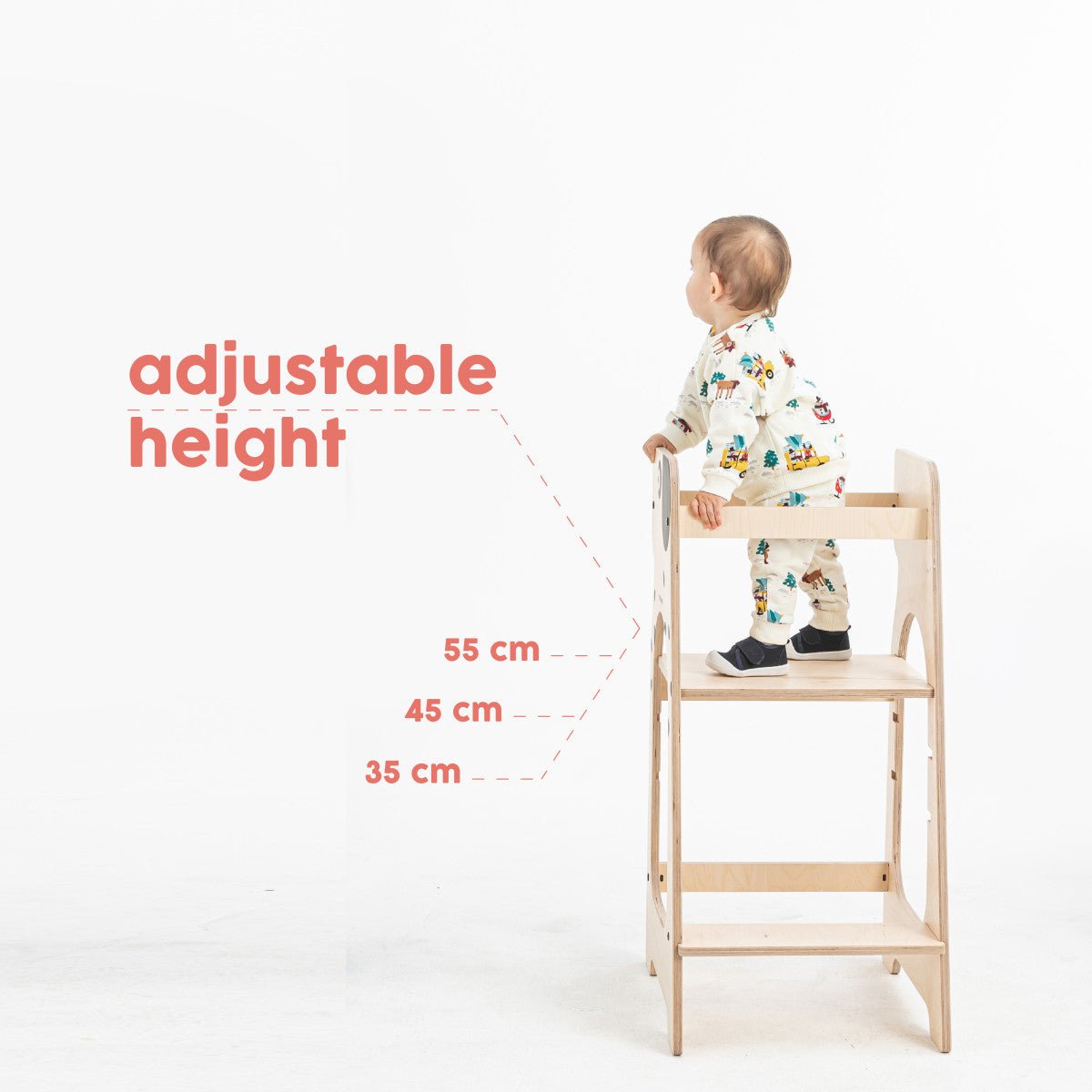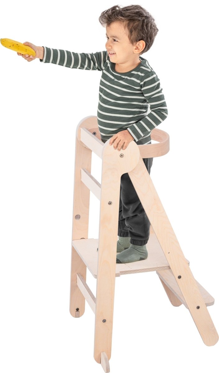 Grazie alle tre altezze regolabili, questa torre didattica cresce senza fatica con il tuo bambino, dai 12 mesi ai 5 anni circa. È realizzata in legno naturale, nello specifico betulla, e quindi non contiene sostanze chimiche. Una scelta sicura e rispettosa dell'ambiente, quindi!