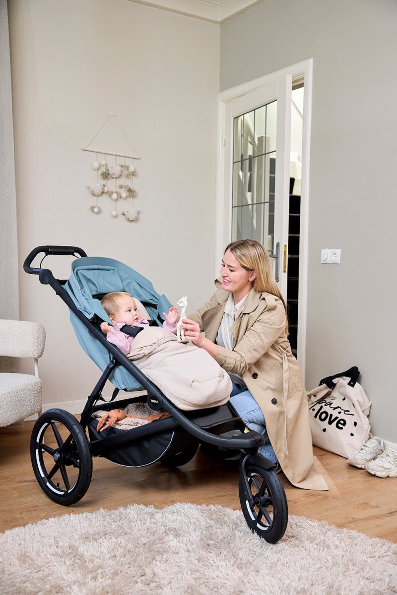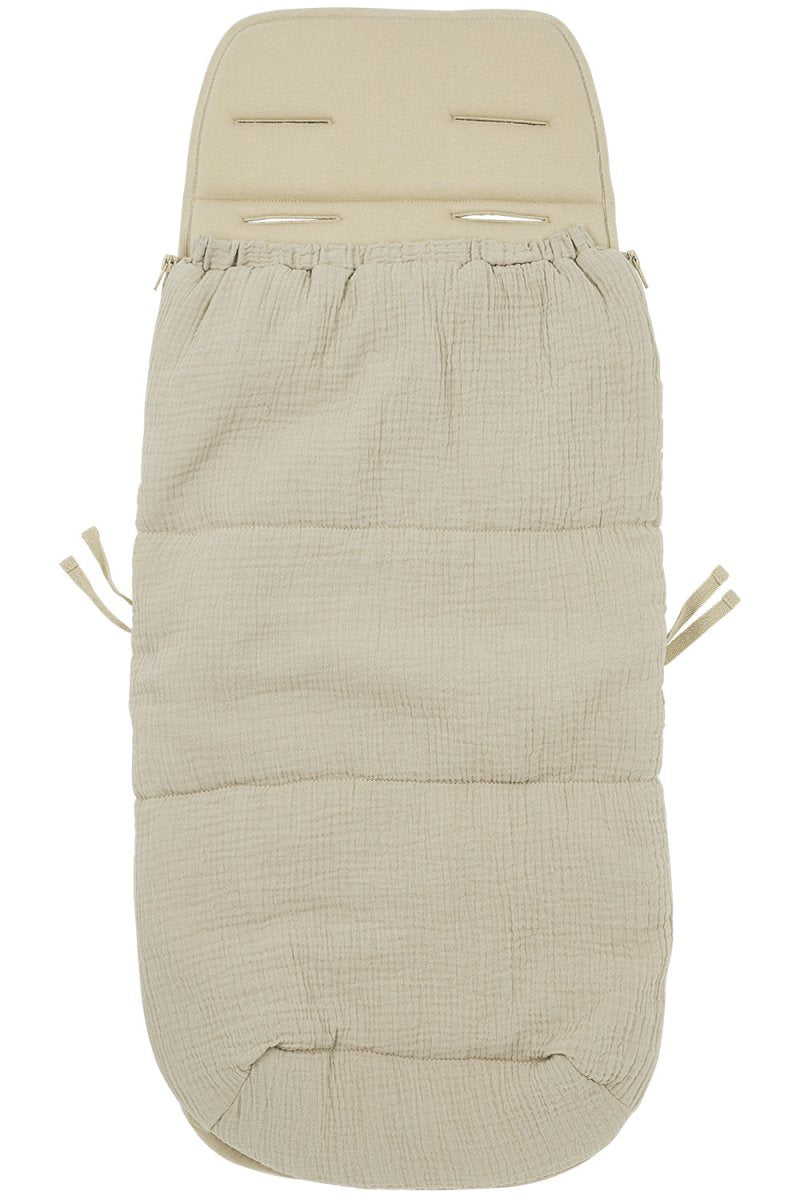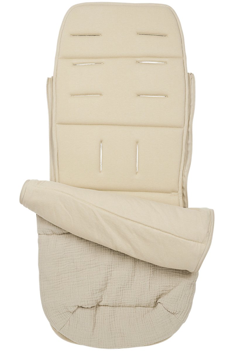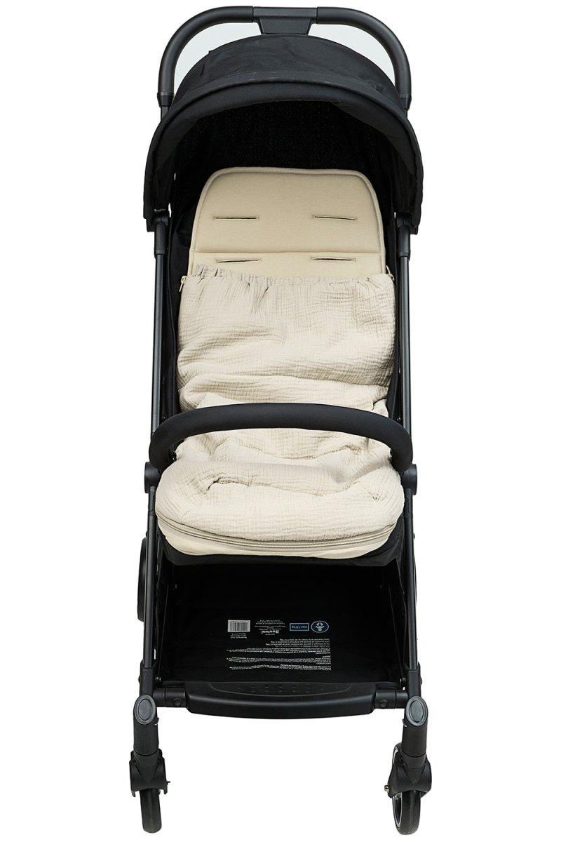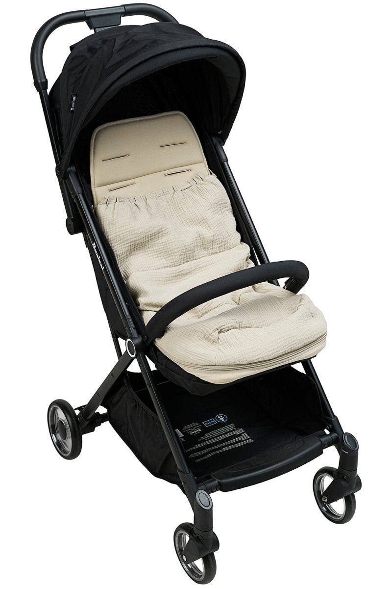 Il coprigambe è realizzato in 100% cotone idrofilo prelavato, che lo rende meravigliosamente morbido al tatto e traspirante. La leggera imbottitura è realizzata al 100% in poliestere. La borsa può essere facilmente aperta e chiusa con una zip. E se fa troppo caldo, basta aprire la zip o togliere completamente la parte superiore per poter utilizzare il fondo come inserto per il passeggino. Pratico, vero?