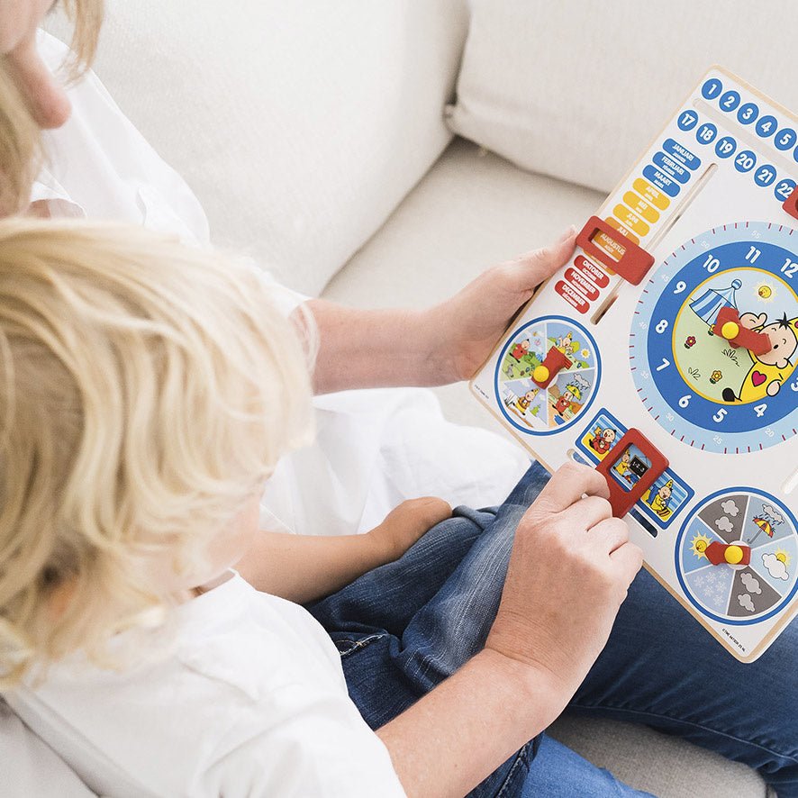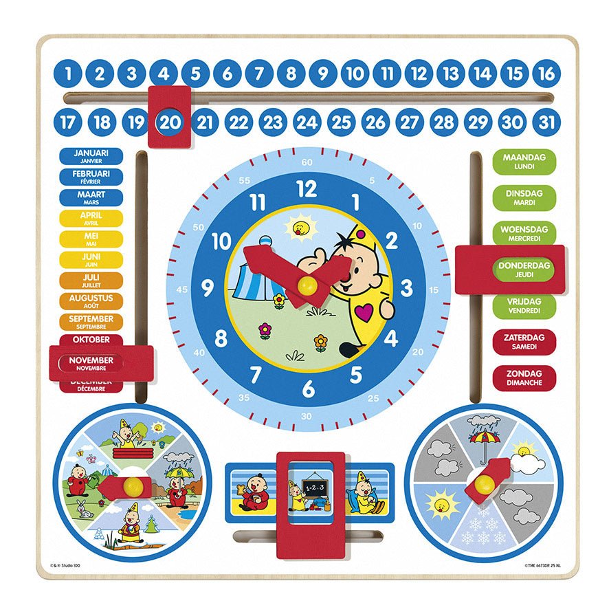 L'orologio calendario Bumba è molto educativo e può dare molta struttura ai bambini che ne hanno bisogno. Utilizzando diversi cursori in legno e lancette rotanti, i bambini possono imparare a leggere l'ora, a vedere cosa c'è in calendario e a che ora. Imparano anche a conoscere le stagioni, i giorni della settimana e i mesi. È possibile impostare anche il giorno del mese e il meteo.