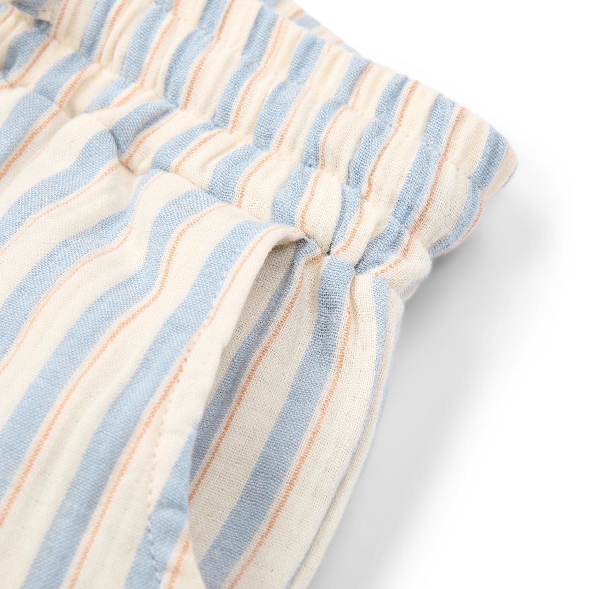 Colori estivi, tessuto arioso e comfort infinito: questi pantaloncini a righe multicolore sono realizzati in morbida mussola, meravigliosamente leggera per le giornate calde. L'elastico in vita con coulisse assicura una vestibilità aderente, mentre i risvolti sulle gambe e le tasche laterali danno agli shorts un tocco giocoso. Realizzati in 100% cotone organico e certificati Oeko-Tex, sono una scelta sostenibile e rispettosa della pelle.