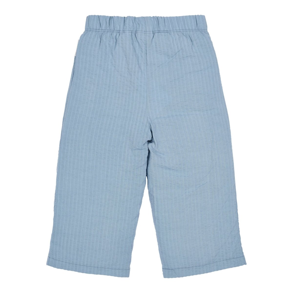 Ariosi, morbidi e pieni di libertà di movimento. Questi pantaloni a gamba larga in Blu denim sono realizzati in un tessuto intrecciato con un giocoso effetto stropicciato. Il taglio ampio e leggero è l'ideale per le giornate attive, piene di giochi e di relax.