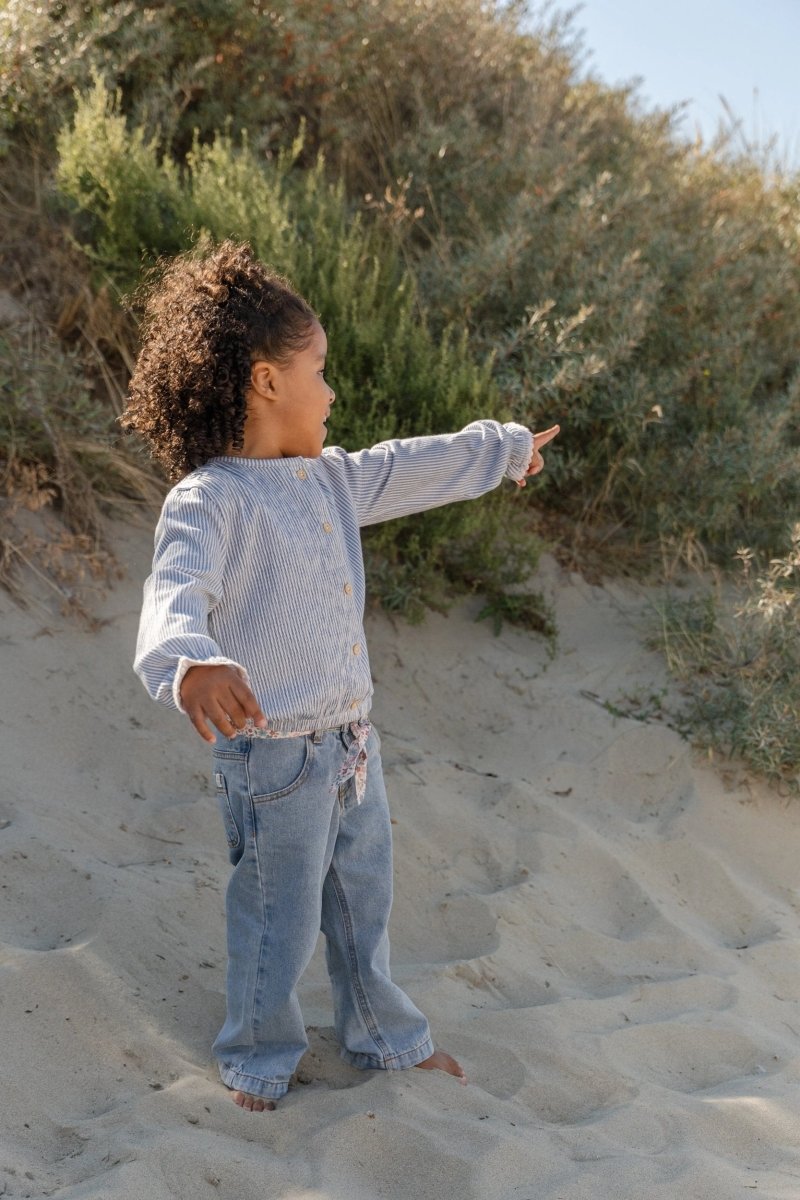 Il denim robusto e confortevole è realizzato in cotone organico e certificato Oeko-Tex: una scelta sicura e responsabile, ogni giorno. La vestibilità ampia offre un'ampia libertà di movimento, sia che il tuo piccolo stia correndo, arrampicandosi o scoprendo tranquillamente il mondo. È bello abbinarla a un top o a una giacca con la stessa stampa floreale per un look completo pieno di colore e carattere.