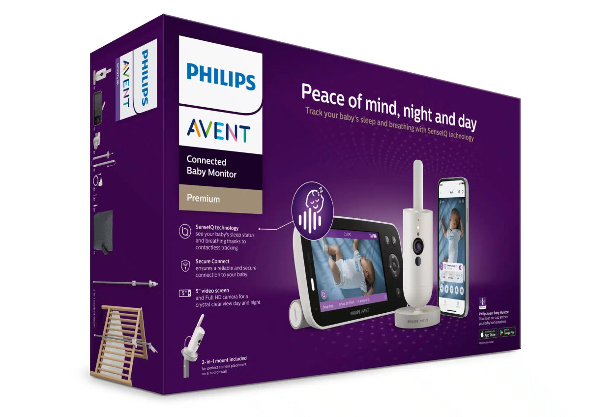 Conosci il baby monitor Premium Connected Philips Avent . Vedi immediatamente lo stato del sonno e la respirazione del tuo bambino con SenseIQ. Monitora il tuo bambino con l'unità genitore da 5 pollici o l'app Baby Monitor+ e interpreta i segnali con Cry Translation.