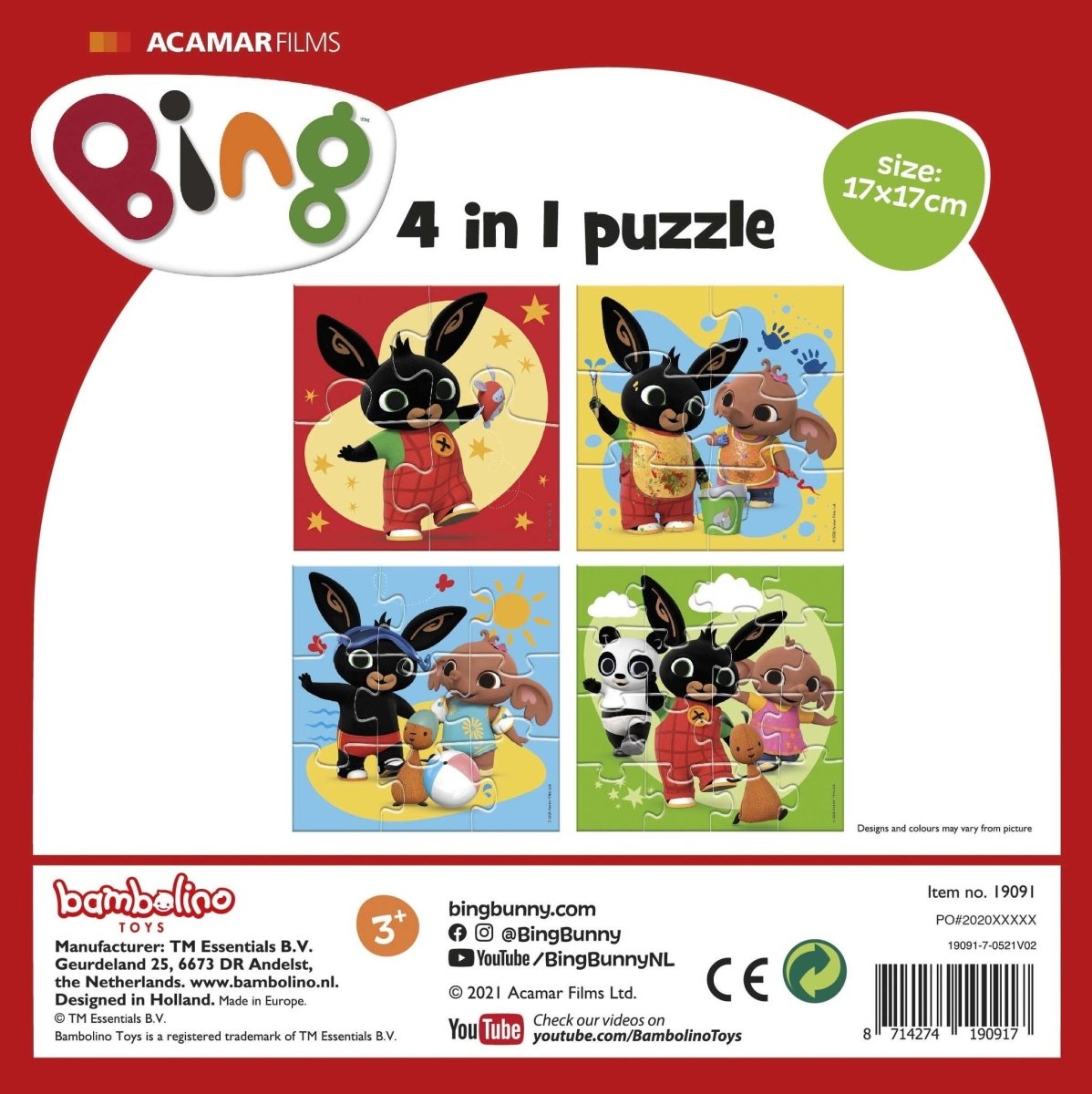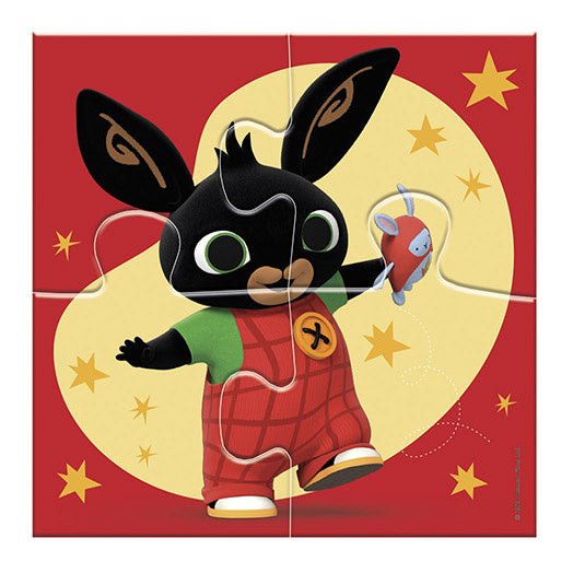 Questo set è composto da 4 puzzle, ognuno con un'immagine colorata di Bing, da solo o insieme a uno dei suoi numerosi e allegri amici Sula, Panda e il tenero amico Flor. Il puzzle è una delle prime attività con cui un bambino allena le capacità motorie. I più piccoli iniziano con un puzzle da 4 pezzi, mentre chi è pronto per la sfida successiva può completare un puzzle da 6, 9 o 16 pezzi