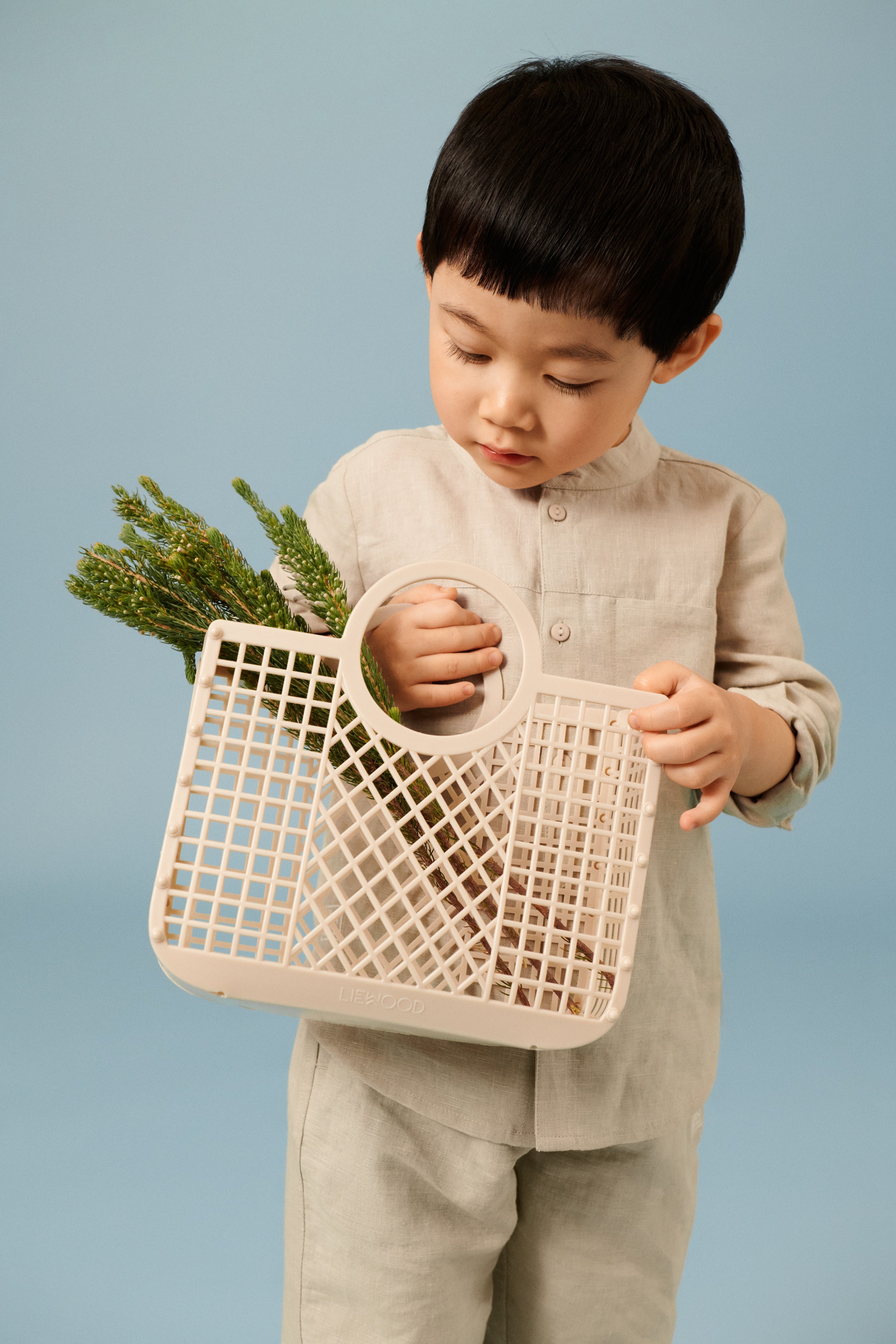 Questa borsa cestino di medie dimensioni è ideale sia per la casa che per i viaggi. Grazie al suo materiale flessibile e al design leggero, la borsa è facile da montare e rimontare. È perfetta per riporre giocattoli, libri o piccoli tesori e può essere portata in viaggio.