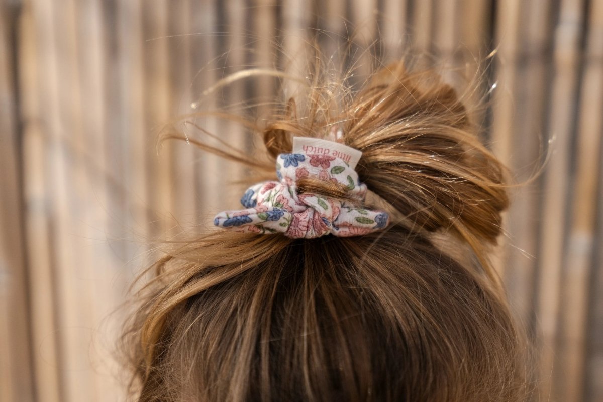 Grazie al morbido elastico, gli scrunchies rimangono al loro posto senza essere troppo stretti. Realizzati in cotone organico e certificati Oeko-Tex: una scelta sicura e responsabile per tutti i giorni. Perfetti per una treccia, una coda di cavallo o uno chignon e da abbinare ad altri articoli della collezione Meadow Flowers per un look completo.