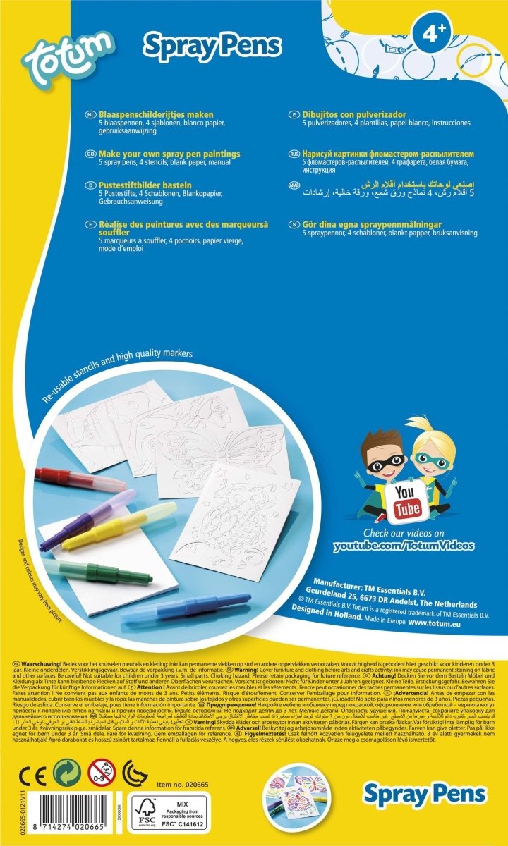 Crea bellissimi dipinti con le penne a spruzzo Totum. Il set include bellissimi stencil riutilizzabili che garantiscono ore di divertimento