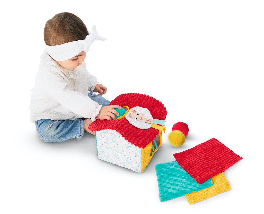 Una casa in morbido tessuto ricca di sorprese che stimola la curiosità del tuo bambino!