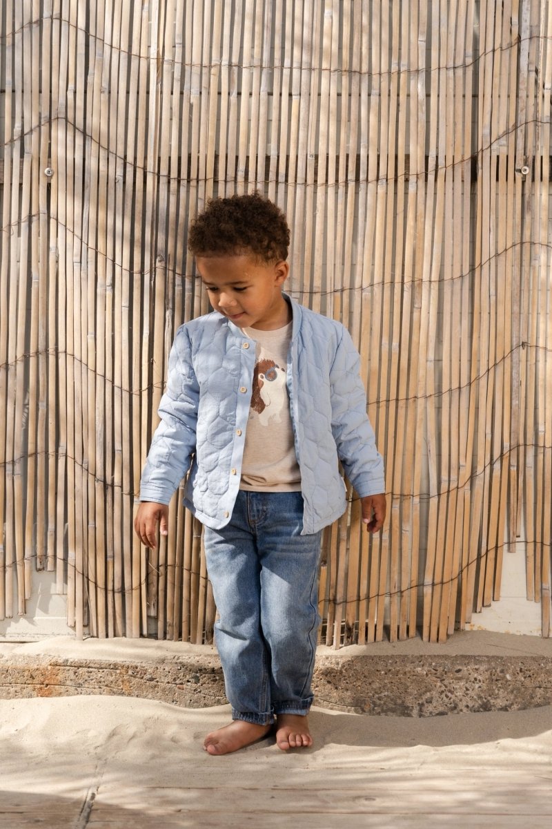 Una maglietta giocosa e pratica per i piccoli esploratori con un grande sorriso.