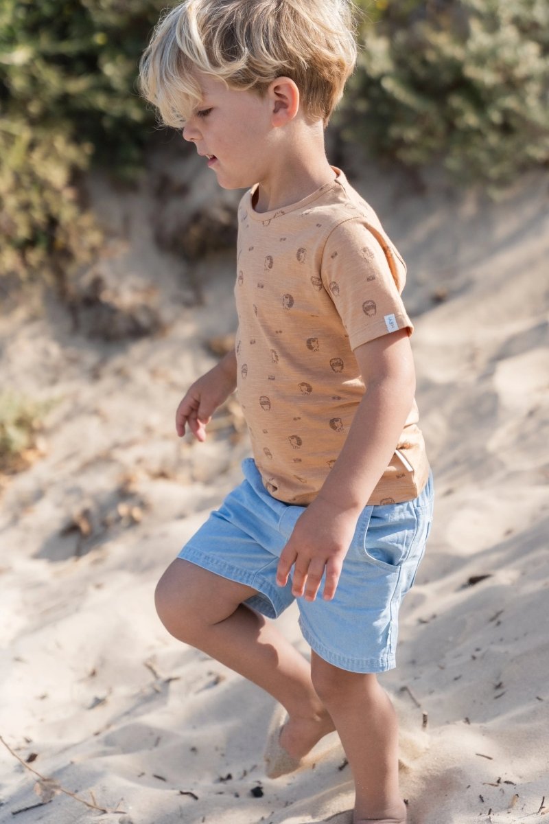 I piccoli avventurieri si sentiranno a casa con questa morbida maglietta in un caldo color ruggine. La sottile stampa degli Amici della Foresta aggiunge un dettaglio giocoso, perfetto per i piccoli occhi curiosi che amano le storie della foresta. Realizzata in 100% cotone organico e certificata Oeko-Tex, è morbida sulla pelle e abbastanza resistente per qualsiasi esplorazione. I comodi bottoni automatici sulla spalla rendono la vestizione e la svestizione facile e veloce.