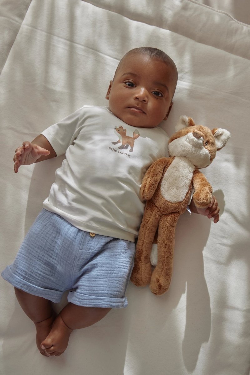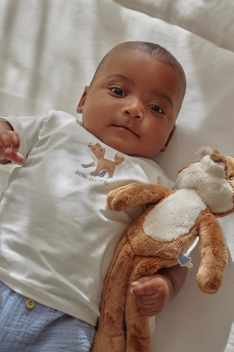 Un'adorabile maglietta per ogni giorno pieno di piccole avventure. Realizzata in cotone biologico e certificata Oeko-Tex, per una scelta sicura e responsabile, ogni giorno.