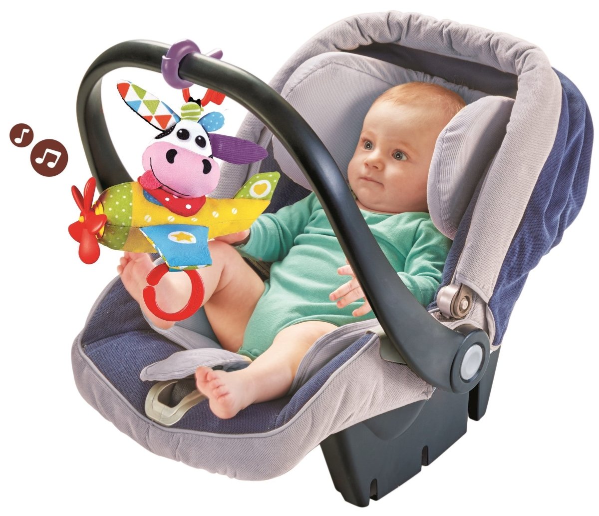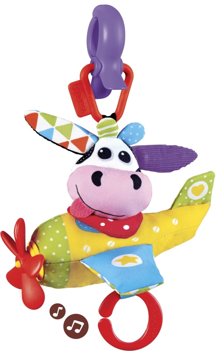 Questa mucca musicale Tap Play del marchio Yookidoo è il giocattolo ideale per la casa o per i viaggi. L'aereo colorato ha eliche che girano, diverse texture e suoni. Il tuo bambino si divertirà sicuramente con la sua amica mucca volante. Il giocattolo è facile da attaccare, ad esempio, alla carrozzina, al seggiolino dell'auto o al passeggino grazie alla clip.